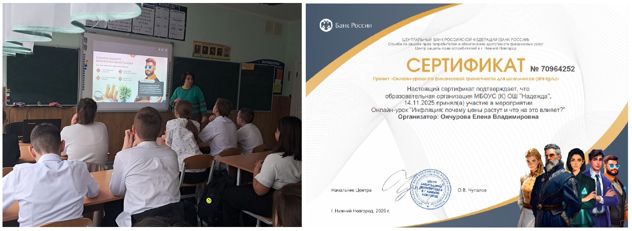 14 ноября ученики 8-х классов нашей школы под руководством Ончуровой Е.В. приняли участие в онлайн-уроке финансовой грамотности по теме: «Инфляция: почему цены растут и что на это влияет?». Обучающиеся узнали, что такое инфляция, как считают инфляцию, как ей управлять, кто и как может влиять на инфляцию, и выполнили интерактивные задания. Финансовая грамотность – это важный навык в современном мире, и мы рады, что наши участники с интересом погрузились в эту тему.