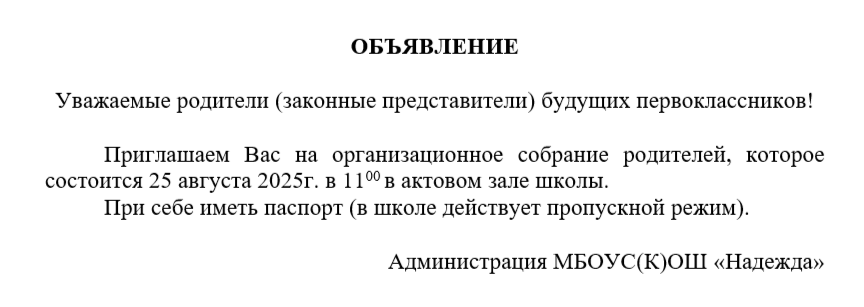 Организационное собрание родителей будущих первоклассников
