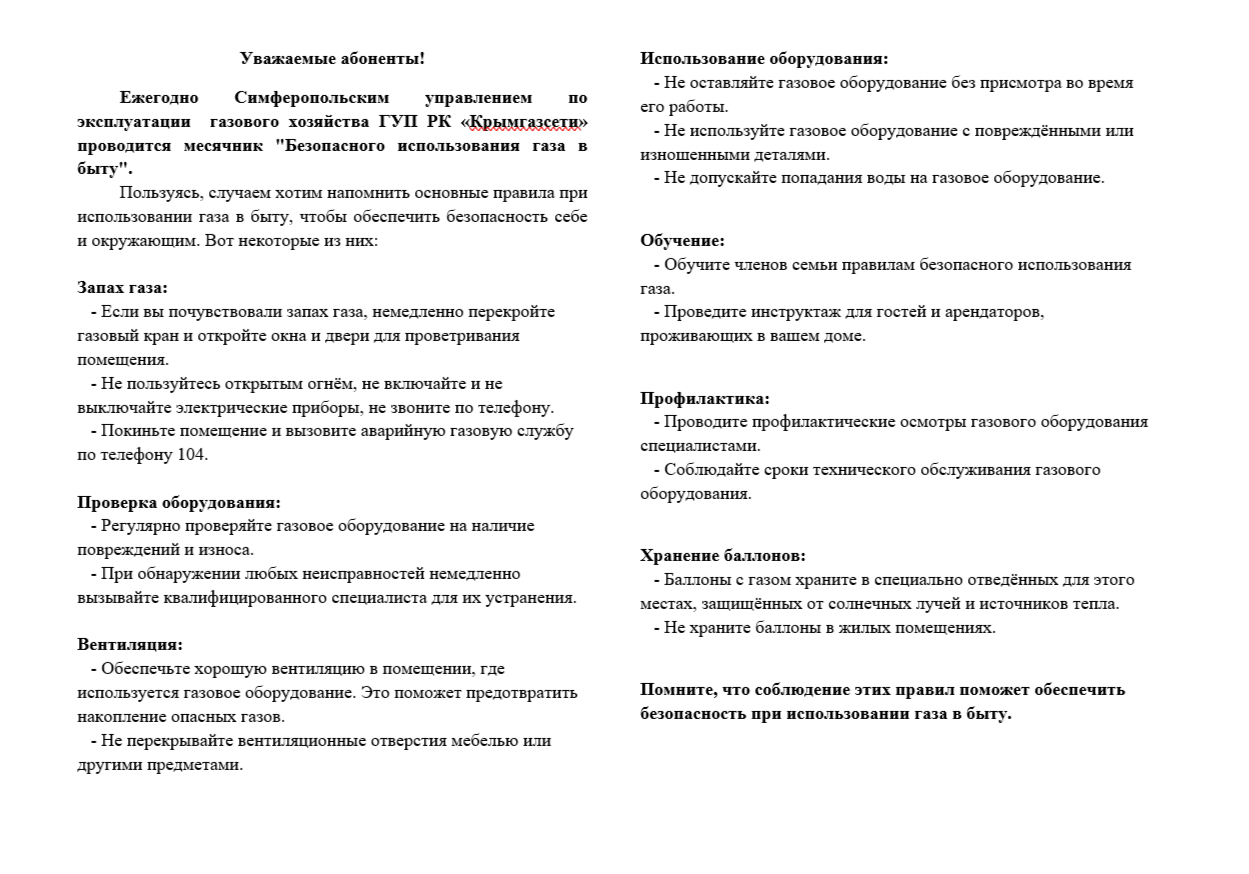 Месячник по пропаганде безопасного и экономного использования газа в быту